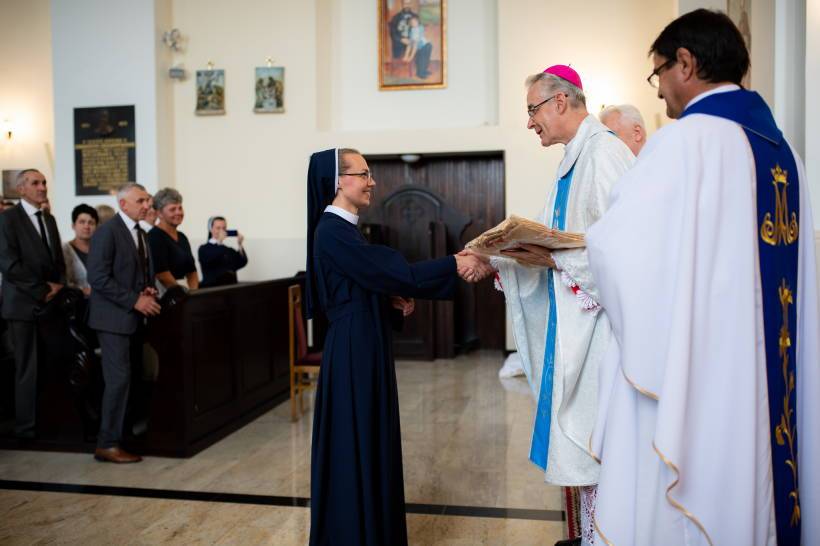 Tego dnia w kościele klasztornym w Dębicy zgromadziły się moje siostry oraz najbliższa rodzina. A ja stałam na tyłach kościoła czekając aż ks. Biskup Wiesław Lechowicz wraz z asystą liturgiczną podejdzie, aby poprowadzić mnie przed ołtarz. Zanim Ksiądz Biskup podał mi krzyż do ucałowania, z uśmiechem na ustach powiedział: „Siostro Katarzyno, Matka Kościół bardzo się cieszy z Twoich ślubów wieczystych…”. To była wzruszająca chwila. Co prawda nie zapamiętałam tych słów słowo w słowo ale wiem na pewno, że bardzo mnie one w tej chwili umocniły!