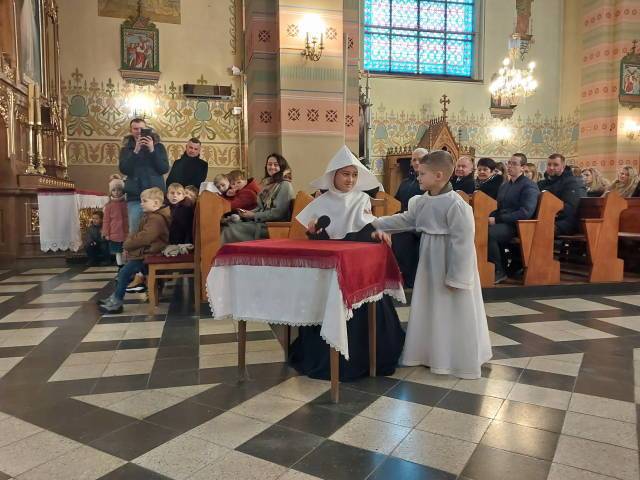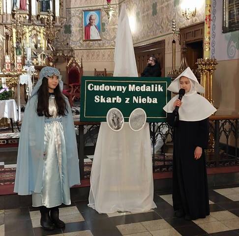 Przedstawienie o Cudownym Medaliku zaprezentowano w dniu, w którym uczniowie przygotowujący się w tym roku szkolnym do Sakramentu Pokuty i Pojednania oraz Eucharystii otrzymali medaliki.