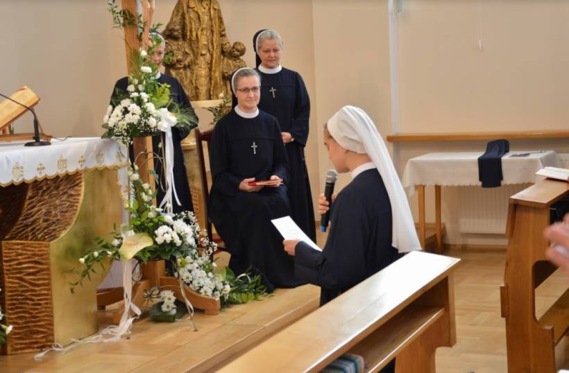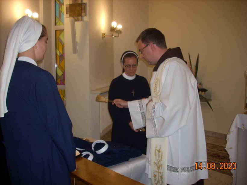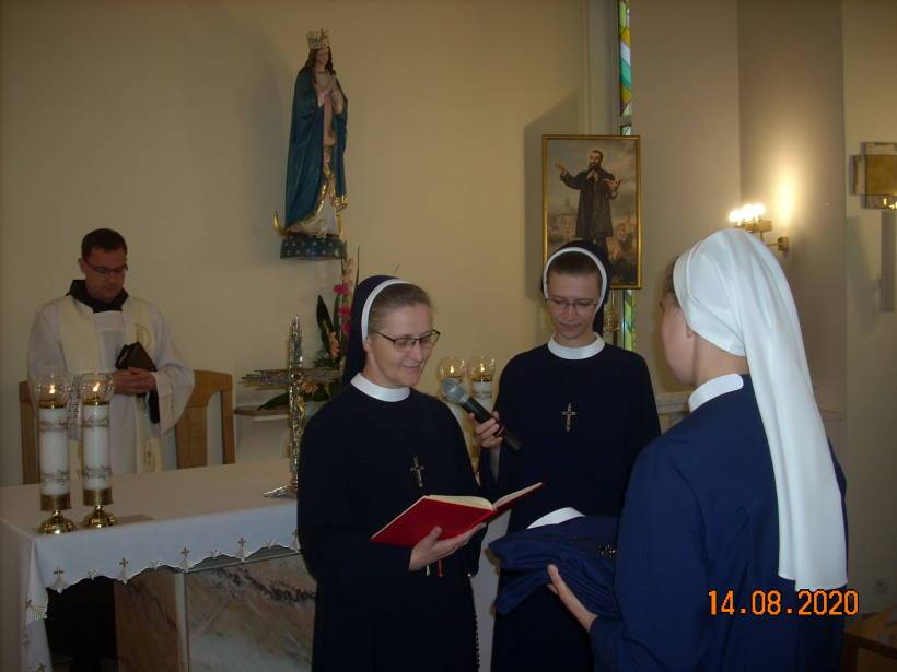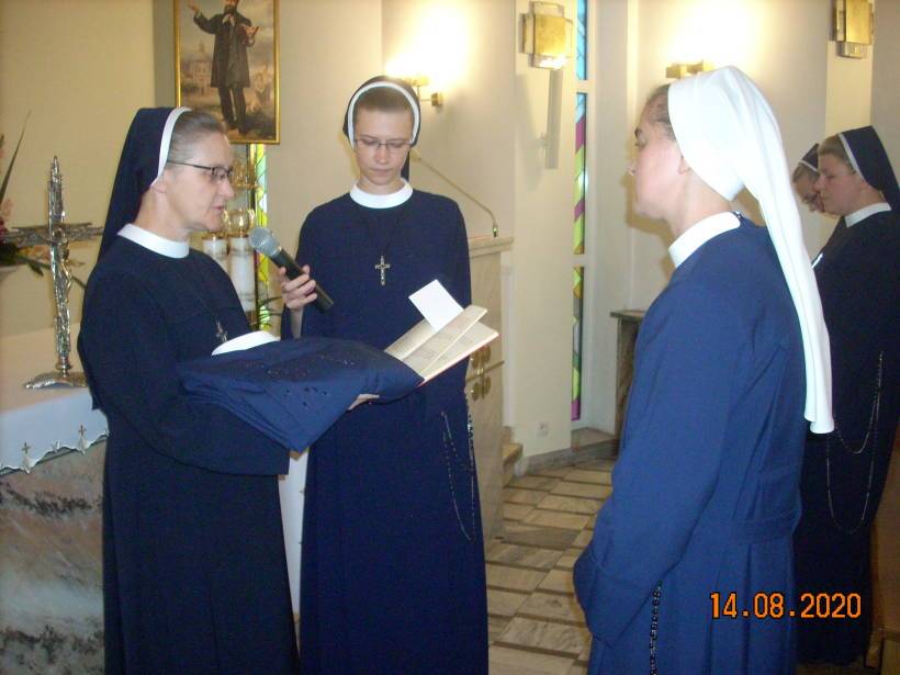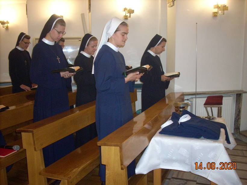 W wigilię uroczystości Wniebowzięcia Najświętszej Maryi Panny, otrzymała habit zakonny. W białym jeszcze welonie pojechała do Tuchowa, aby nazajutrz złożyć pierwsze śluby zakonne, do których przygotowywała się przez etap wstępnej formacji w Dębicy, 2- letni nowicjat w Tuchowie i 5-dniowe rekolekcje w milczeniu.