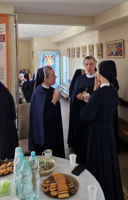 9 marca 2024 r. w Domu Generalnym sióstr służebniczek w Dębicy odbyło się spotkanie formacyjno szkoleniowe dla sióstr katechetek. W pierwszej części spotkania O. dr Janusz Sok CSsR przedstawił sytuację Kościoła na podstawie dokumentu podsumowującego I sesję Synodu o Synodalności, zwracając szczególną uwagę na wyzwania stojące przed życiem konsekrowanym. Ojciec zaakcentował trzy filary Kościoła Synodalnego: komunię, uczestnictwo i misję. W pełnionej posłudze potrzebujemy pogłębiać komunię z Bogiem i drugim człowiekiem oraz z oddaniem uczestniczyć w misji Kościoła, bo katecheta to nie tylko nauczyciel, ale świadek wiary, który służy i troszczy się o własną formację duchową.