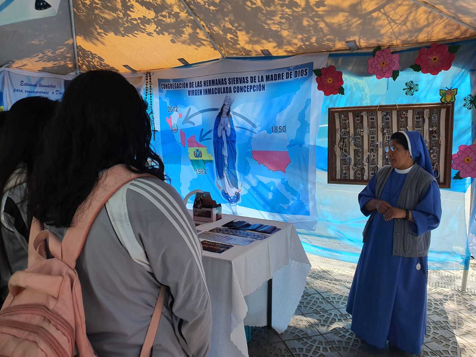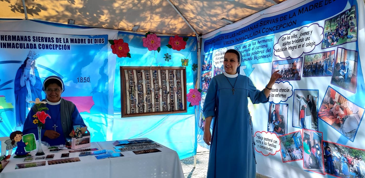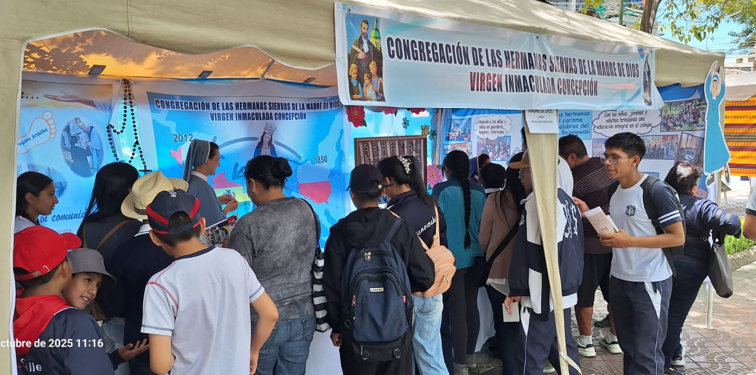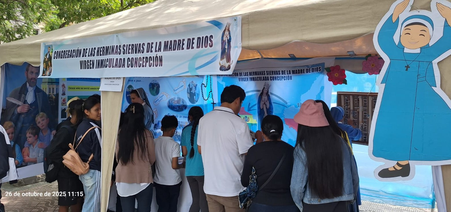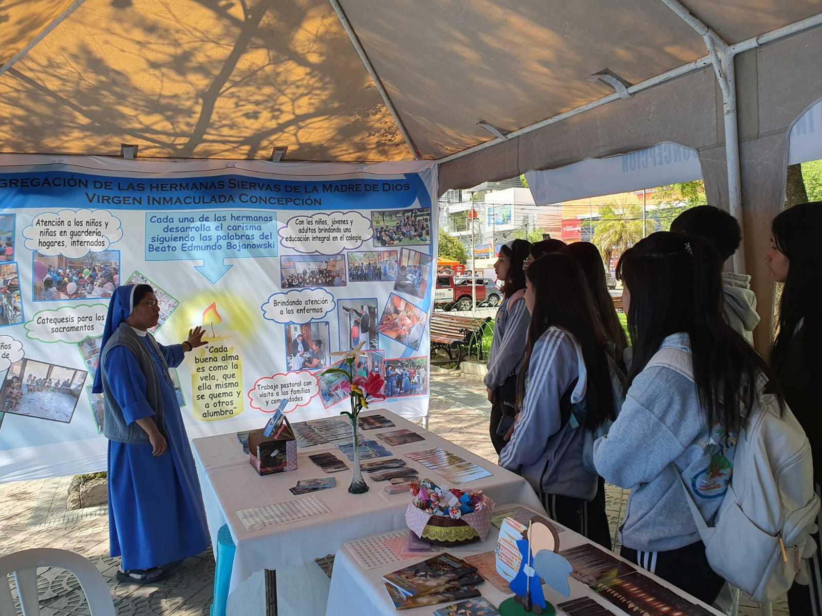 W niedzielę 6 października od godziny 9.00 do15.00 na placu Plaza de las Banderas w Cochabamba odbyło się Expo Carisma i Festiwal Misyjny. Było to wydarzenie, które miało na celu celebrację bogactwa charyzmatów i stylów życia, które Duch Święty inspiruje w Kościele, w atmosferze muzyki, tańca, świadectw i misyjnej radości. Wiele Zgromadzeń i Ruchów miało swoje stoiska przy których prezentowały swoją działalność, duchowość i charyzmat. My również wzięłyśmy udział w tym wydarzeniu. Cztery siostry: s. Miriam, Virginia, Carolain i Karolina opowiadały o naszym Założycielu, historii, charyzmacie, duchowości i formacji. Przygotowałyśmy również około 200 różańców, które można było otrzymać za udzielenie poprawnej odpowiedzi na wylosowane pytanie. Każdy też mógł zabrać ze sobą obrazki, zakładki i folderki oraz lizaki z myślą bł. Edmunda. Nasze stoisko odwiedziło mnóstwo osób, zwłaszcza młodych, które z uwagą i zainteresowaniem słuchały sióstr. Z ogromną radością losowali też pytania, aby otrzymać różaniec. Dla nas był to bardzo dobry dzień pełen wrażeń, dobrych spotkań i rozmów.