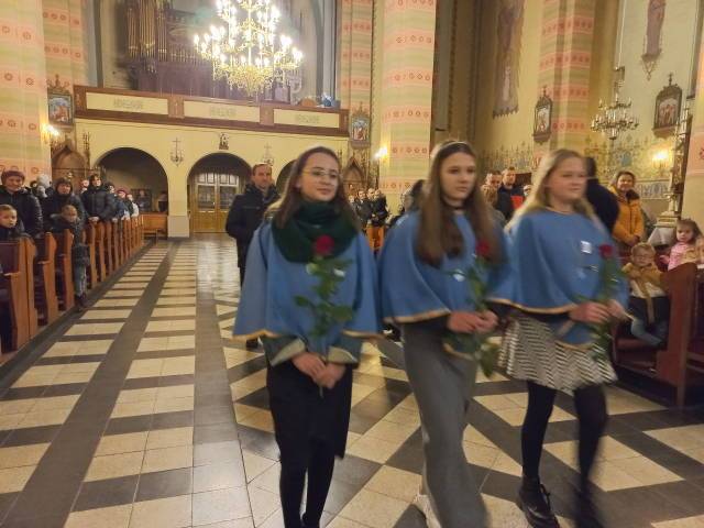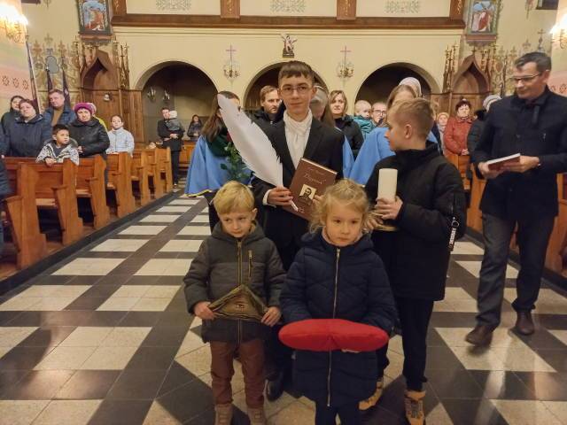 „Kto kocha – ten spala się w miłości…” – tymi słowami dzieci wprowadziły nas w dziękczynną Mszę św. ukazując postać „serdecznie dobrego człowieka”. W czasie procesji z darami ofiarnymi chłopiec w surducie, przypominający ubiorem Edmunda wraz z gromadką dzieci, przyniósł do ołtarza jego „Dziennik” – źródło prawdy o Autorze. Dzieci składały inne symbole związane z Patronem dnia: Oko Opatrzności, świecę oraz serce. Dziękując Bogu za dar ochronek we współczesnym świecie, rodzina przyniosła do ołtarza „Katechizm według bł. Edmunda Bojanowskiego”, który w dzisiejszym świecie jest niezawodną pomocą dla rodziców w wychowaniu dzieci. Dziewczęca Służba Maryjna złożyła trzy róże jako dar wdzięczności za posługę trzech sióstr służebniczek w tutejszej parafii.