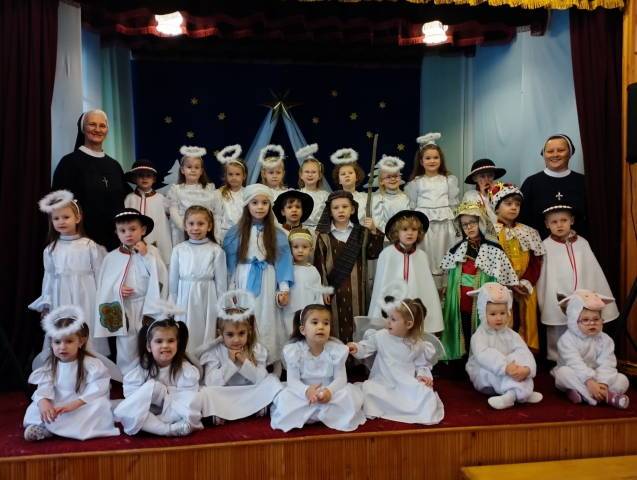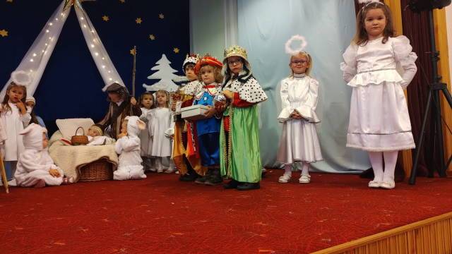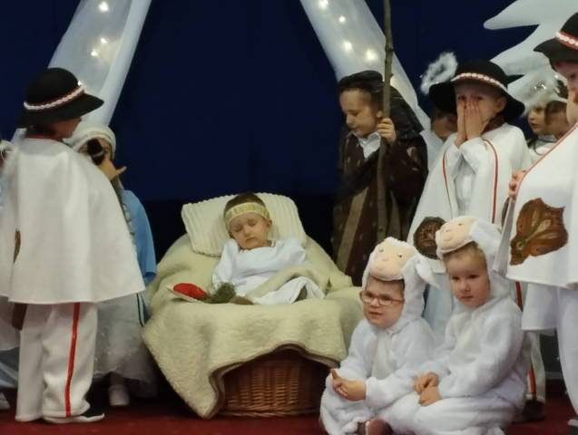 Ta wyjątkowa noc narodzin Zbawiciela, po raz kolejny została nam przybliżona, tym razem przez małych aktorów. Skromni pasterze, Trzej Królowie, Aniołowie i ich tańce, śpiew kolęd oraz pastorałek – to wszystko ku czci nowonarodzonej Dzieciny. Największym zainteresowaniem cieszył się mały „Jezus”, który swą rączką błogosławił zebranych. To on poruszył serca widzów.