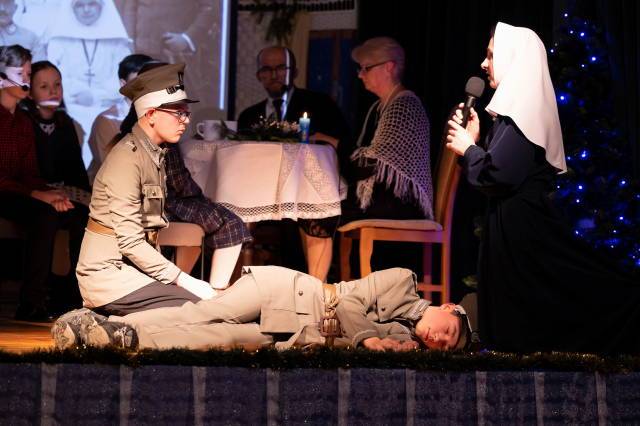 Komplementarność, doskonała pełnia i ideał jedności zamknięty w liczbie trzy splata się z historią dębickiego zgromadzenia sióstr służebniczek. Pewnego sierpniowego dnia, 140 lat temu, trzy siostry służebniczki przybyły na nasze ziemie, by odtąd każdego dnia z poświęceniem i czułością realizować charyzmat zakonu, niosąc pomoc potrzebującym i roztaczając skrzydła troskliwej opieki nad niewinnymi, bezbronnymi mieszkańcami miasta i okolic. W Niedzielę Chrztu Pańskiego, 8 stycznia 2023 r. dębiczanie mieli okazję obejrzeć wyjątkowe przedstawienie, harmonijnie splatające przepiękną, zbudowaną na franciszkańskiej, tradycję jasełek z przebogatymi dziejami zgromadzenia. „Jasełka z historią w tle”, przygotowane we współpracy trzech pokoleń stanowiły poruszającą i ubogacającą podróż, rozpiętą między dwiema perspektywami czasowych i pokazującą doniosłe znaczenie narodzin Dzieciątka, wyznaczających kierunek każdej ze ścieżek biografii naszych i naszych przodków. Spektakl wyreżyserowany przez s. Tadeuszę Dyrek publiczność obejrzała w Auli bł. Edmunda Bojanowskiego, biorąc udział w podróży między stuleciami. Scenariusz, będący polifoniczną opowieścią o najcenniejszym – betlejemskim Bożym darze oraz ideale miłości i poświęcenia urzeczywistnianym każdego dnia przez służebniczki, wskazał na rolę opiekunów w wychowaniu oraz istotność kultywowania delikatnych wartości. „Jasełka z historią w tle” powstały dzięki zaangażowaniu całego grona osób z najróżniejszych środowisk: dzieci z Ochronki „Promyki Nadziei”, wolontariuszy, grupy artystycznej Safo, Teatru Kurtyny, a także serdecznych przyjaciół Zgromadzenia: Moniki Rojek-Kałek, Agnieszki Hayn i Tomasza Czapli. Owocna współpraca poświadcza inkluzywność tak wspaniałych wydarzeń jak jasełka, wpisanych wszak na stałe w naszą chrześcijańską tradycję, a reakcje publiczności pozwalają żywić głęboką wiarę, że emocje oraz wiedza pozostaną z widzami na o wiele dłużej, niż czas trwania spektaklu.