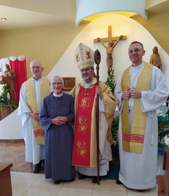 Jubileuszowa Eucharystia, podczas której siostry ponowiły swoje oddanie Bogu na kolejne lata, była sprawowana w kaplicy domu Wikariatu Misyjnego w Cochabamba, Pacata Alta. Mszy św. przewodniczył bp Krzysztof Białasik SVD z diecezji Oruro, a koncelebrował o. Józef Smyksy CSsR i ks. Jarosław Wiśniewski, kanclerz Kurii w Oruro. Podczas homilii główny Celebrans zachęcał do dalszej, radosnej wierności powołaniu budowanej na bazie codziennej, głębokiej osobistej relacji z Umiłowanym Panem.