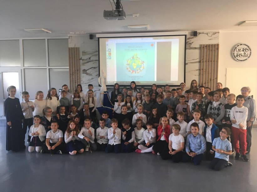 We wtorek18 października 2022 roku o godz. 9.00 w ramach międzynarodowej akcji modlitewnej “Milion dzieci modli się na różańcu” – zorganizowanej przez Papieskie Stowarzyszenie Pomoc Kościołowi w Potrzebie – dzieci ze wszystkich kontynentów zgromadziły się, aby poprzez modlitwę różańcową prosić o pokój i jedność na świecie.