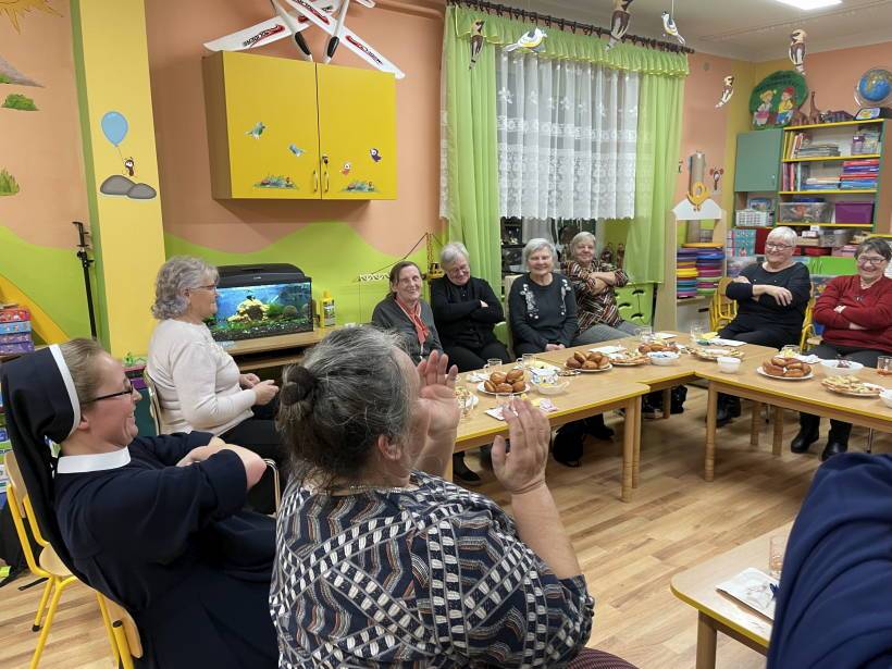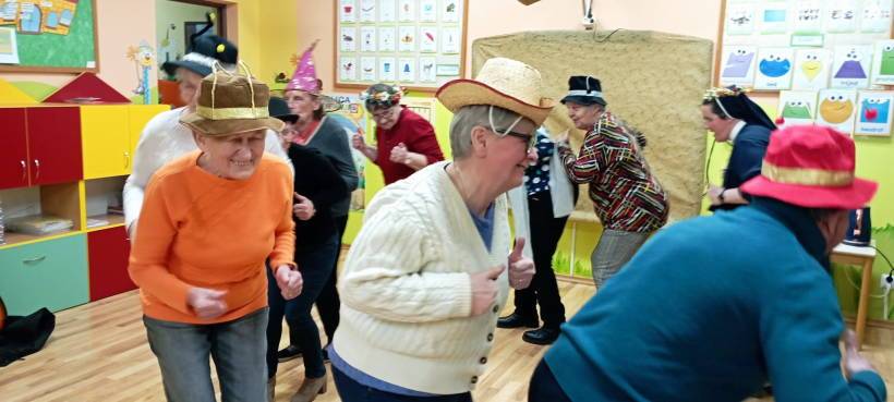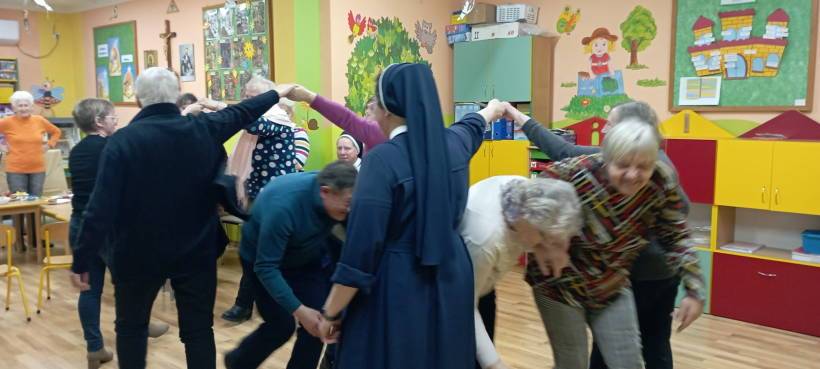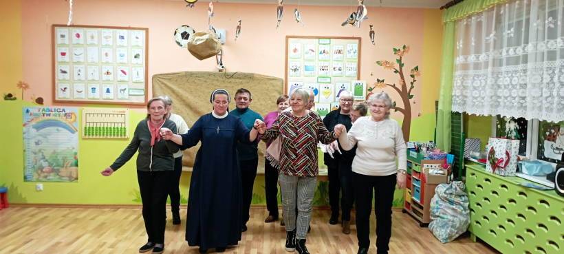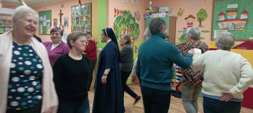 W rodzinnej atmosferze, jak zwykle, tematów do rozmów nie brakowało: były osobiste świadectwa, plany na przyszłość dotyczące naszej misji w parafii i w Kościele, a także związane ze zbliżającym się Wielkim Postem. Nie zabrakło też radosnej zabawy. Siostry przygotowały repertuar zabaw, piosenek i tańców – rozpoczęliśmy najpiękniejszym z nich, czyli Polonezem. Bawiliśmy się pełni pozytywnej energii wykazując się kreatywnością przy doborze kapeluszy i masek.