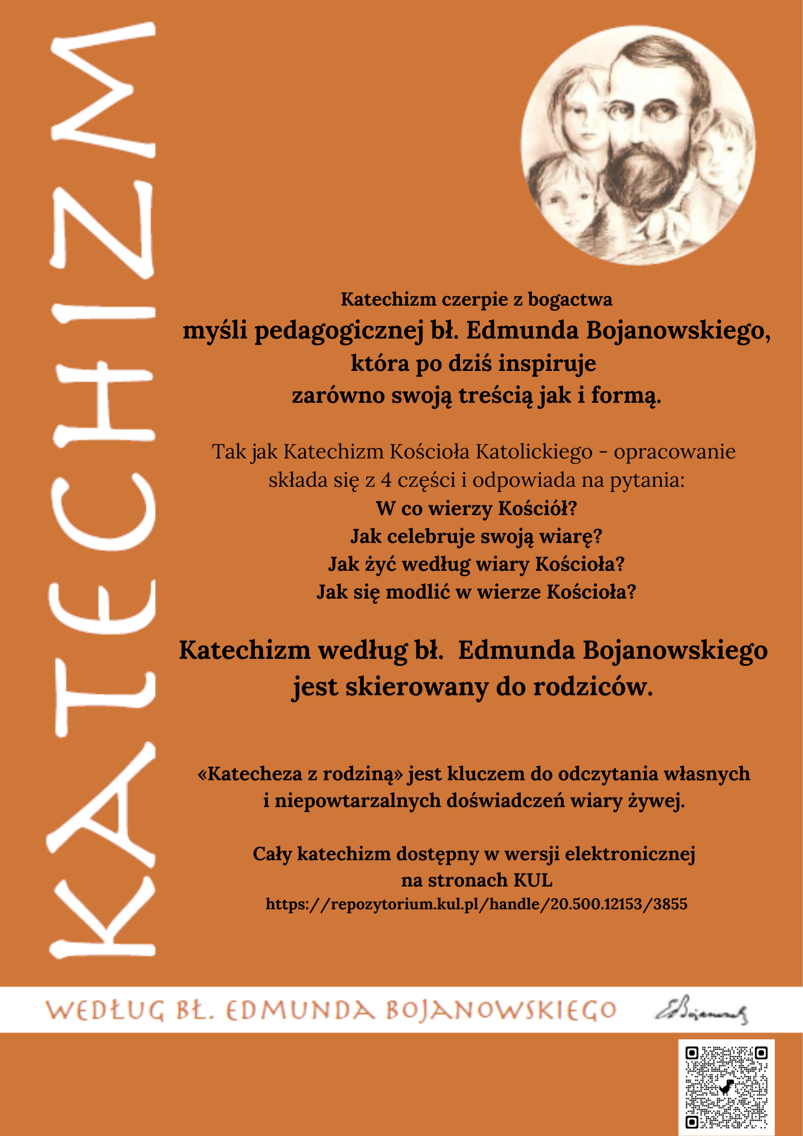 Dzisiaj często rodzice zadają sobie pytanie, jak należy wychowywać dzieci, aby w otaczającym nas, coraz bardziej zsekularyzowanym świecie, przekazywać im wiarę w Boga i uczyć żyć zgodnie z moralnością chrześcijańską. Cenną pomocą w tym względzie może okazać się Katechizm według Edmunda Bojanowskiego. Katechizm czerpie z bogactwa jego myśli pedagogicznej, uderza jasnością w przekazie treści religijnych. Jest adresowany głównie do rodziców i stanowi jedyny tego rodzaju Katechizm w Kościele polskim.