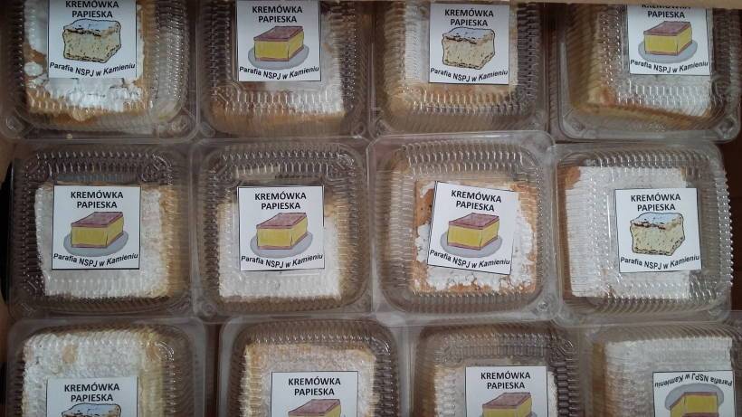 Ciastka przygotowały dziewczęta wraz ze swoimi rodzicami. Wypieki rozeszły się błyskawicznie. W ten sposób każdy parafianin w Kamieniu z „Papieską Kremówką” i w rodzinnym gronie wspominał piękne lata życia i posługi Naszego Rodaka św. Jana Pawła II.