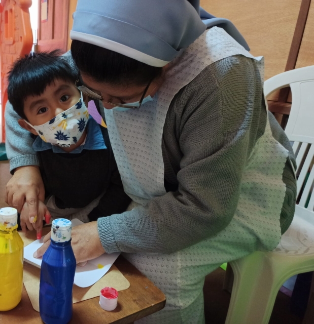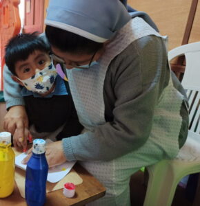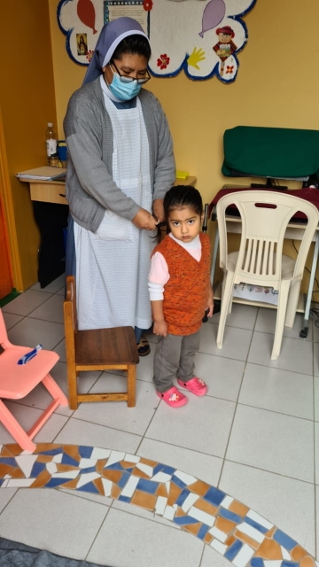 Po długiej przerwie z powodu pandemii, w połowie kwietnia 2021 r. otworzyłyśmy drzwi ochronki – mimo, że dotąd w Peru nadal nie funkcjonują szkoły ani przedszkola i żłobki. Na ile tylko możemy, staramy się organizować pomoc dla rodzin zachowując przy tym wszelkie środki ostrożności. Z powodu obostrzeń covidowych s. Wilma Sonia nie może pracować w ochronce w pełnym wymiarze godzin i z całą grupą dzieci. Jednak już pierwsze święta i urodziny były organizowane. Dzieciaki z radością i chętnie przychodzą do ochronki, a ich mamy podziwiają, jak siostra pięknie splata włosy dziewczynkom.
