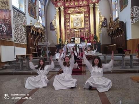 O powołaniu można mówić na różne sposoby. Zawsze pozostaje ono Tajemnicą i osobistym doświadczeniem. Można też o powołaniu śpiewać, tańczyć modląc się, bo jest ono także swoistym misterium. Tak właśnie na tę niezgłębioną tajemnicę powołania młodzi mieszkańcy parafii w Zaborowie. W Niedzielę Dobrego Pasterza, 25 kwietnia 2021 roku Dziewczęca Służba Maryjna z parafii Nawiedzenia Najświętszej Maryi Panny przed Eucharystią o g. 10.30 wykonała inscenizację pod tytułem „Misterium o powołaniu”. Podczas Mszy Świętej, której przewodniczył ks. Paweł Kurzeja, wikariusz z parafii, cała wspólnota modliła się o dar nowych powołań w Kościele. W tej prośbie było zawarte nasze „wołanie o powołanie” do Zgromadzenia Sióstr Służebniczek.