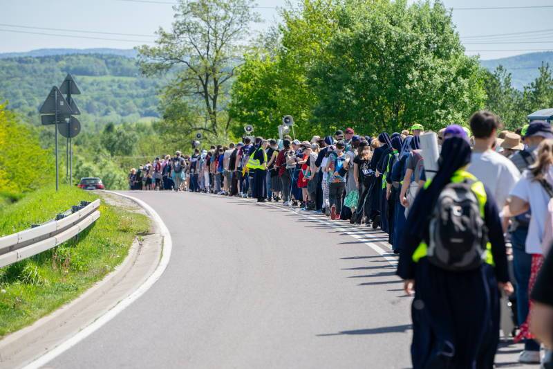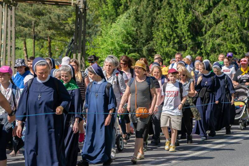 W drogę ruszyłyśmy rano z błogosławieństwem kapłańskim. Pan obdarzył nas piękną, słoneczną pogodą. Był to czas modlitwy, śpiewu, czasu dla brata i siostry pielgrzymujących z nami. Nie zabrakło też tańców na postojach. Kapłani nieustannie obdarzali Bożym Miłosierdziem w Sakramencie Pojednania, a na zakończenie mogliśmy wspólnie uczestniczyć w Eucharystii u stóp Tronu Matki Bożej Tuchowskiej.