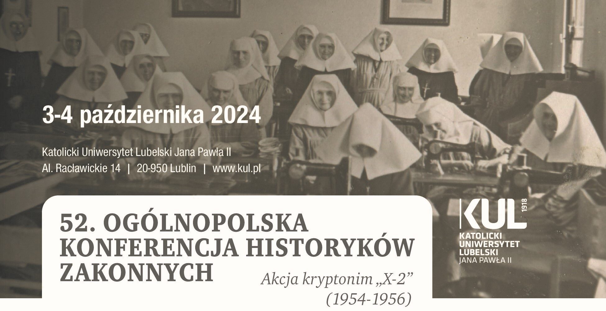 W dniach 3-4 października 2024 r. w Katolickim Uniwersytecie Lubelskim odbędzie się ogólnopolska konferencja historyków zakonnych. Tematyka będzie związana z 70. rocznicą akcji o kryptonimie „X-2”. Więcej informacji o konferencji znajduje się na stronie KUL.