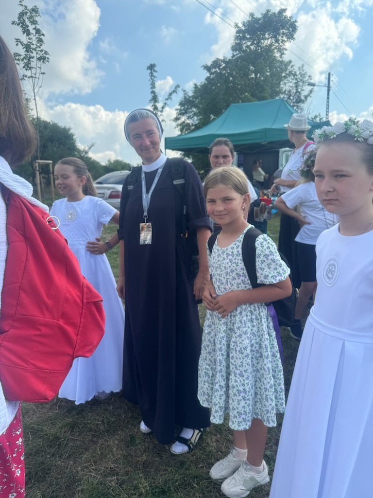 Wielką radością i nadzieją na przyszłość jest to, że w naszej grupie było bardzo dużo ludzi młodych oraz rodzin z dziećmi. Najwięcej było dzieci w wieku przedszkolnym i szkolnym, dlatego też utworzono tzw.”pielgrzymkowe przedszkole urszulkowe”. Z wiadomych względów niektóre dzieci często korzystały z podwozu samochodami, ale na wielkie uznanie zasługuje dwoje dzieci, które cały pielgrzymi szlak przeszły pieszo – chłopiec z V i dziewczynka z III klasy, która szła ze swoją mamą. Podziwiałam tę dziewczynkę, jej zapał, radość, siłę woli, hard ducha, brak narzekania, marudzenia, zupełnie inny obraz, jaki możemy dzisiaj zobaczyć wśród dzieci. To przepiękny przykład dla wszystkich, nie tylko dla dzieci, ale i dla nas dorosłych. Gdy każdego dnia patrzyłam na nich, to przypominały mi się słowa naszego Ojca Edmunda Bojanowskiego „Od dzieci trzeba zacząć – wszystko”.