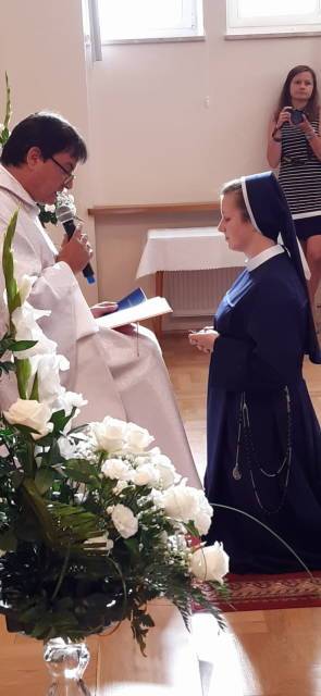Pierwsze śluby zakonne złożyły dwie siostry nowicjuszki: s. Magdalena i s. Beata. Obrzęd odbył się w Tuchowie, w kaplicy domu nowicjatu. Przewodniczył ks. Ireneusz Stolarczyk, kapelan domu generalnego.