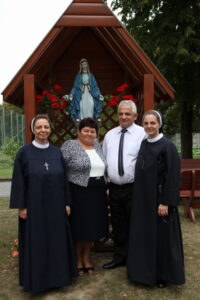 Zapewne moi Rodzice (+Ewa i Józef), kiedy zawierali sakrament małżeństwa w 1960 roku, nie mieli najmniejszego pojęcia, czy będą mogli mieć potomstwo i kim zostaną ich dzieci. Ale Bóg, który wybiera nas już w lonie naszej matki”, w swej odwiecznej Opatrzności miał swój plan i w tajemniczy sposób wybrał naszą prostą, pobożną, pracowitą, ofiarną i miłującą się Rodzinę, i z pięciorga rodzeństwa zaprosił nas trzy do oddania swego życia na całkowitą Jemu służbę. Atmosfera rodzinnego domu, wspólne wspieranie się w codziennych trudnościach, jak i stałe odnoszenie wszystkiego do Boga przez wstawiennictwo Maryi z pobliskiego Sanktuarium Tuchowskiego, do którego często pielgrzymowaliśmy, pomagało nam wzrastać w świadomości, że nasze życie to dar otrzymany od Stwórcy. Stąd, pomimo różnych życiowych planów lat młodzieńczych, przyjęłyśmy Jego pomysł na nasze życie i… Tak jesteśmy służebniczkami Maryi w Zgromadzeniu Sióstr Służebniczek Bogarodzicy Dziewicy Niepokalanie Poczętej. Z Bożej łaski znalazłyśmy się, więc w nowej dużej Rodzinie Zakonnej.