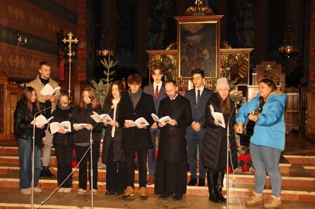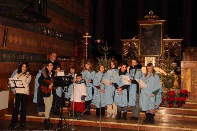 Nasza Rodzina zaprezentowała dwie kolędy: „Dlaczego dzisiaj wśród nocy dnieje” i ,,Gdy śliczna Panna”. Na gitarze akompaniowała s. Monika Ragan, wcześniej prowadząc również próby śpiewu. Wystąpiła też z nami s. Ligia Wlezień i opiekun naszej wspólnoty ks. Marek Figiel.