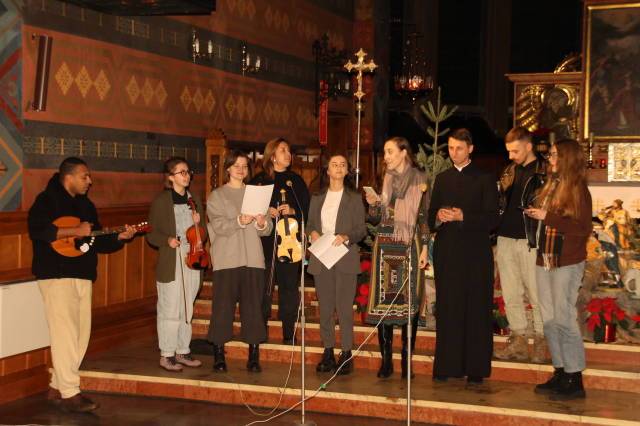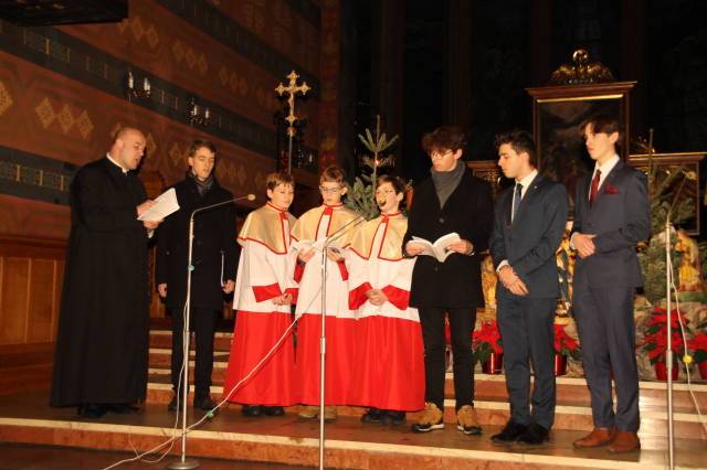 Jak co roku, kolędę słowacką zaśpiewał ks. prałat Andrzej Waksmański wspominając jednocześnie lata swojego dzieciństwa spędzone w słowackiej szkole. Wystąpiła też nowa grupa młodzieży białoruskiej wraz ze swoim opiekunem ks. Yuryjem Rashatko pracującym obecnie w naszej parafii. Na zakończenie wystąpił chór parafialny pod kierunkiem pana organisty Szymona Strzebońskiego. Grupy parafialne wspomagał i całość muzycznie oprawił pan Ziemowit Pawlisz.