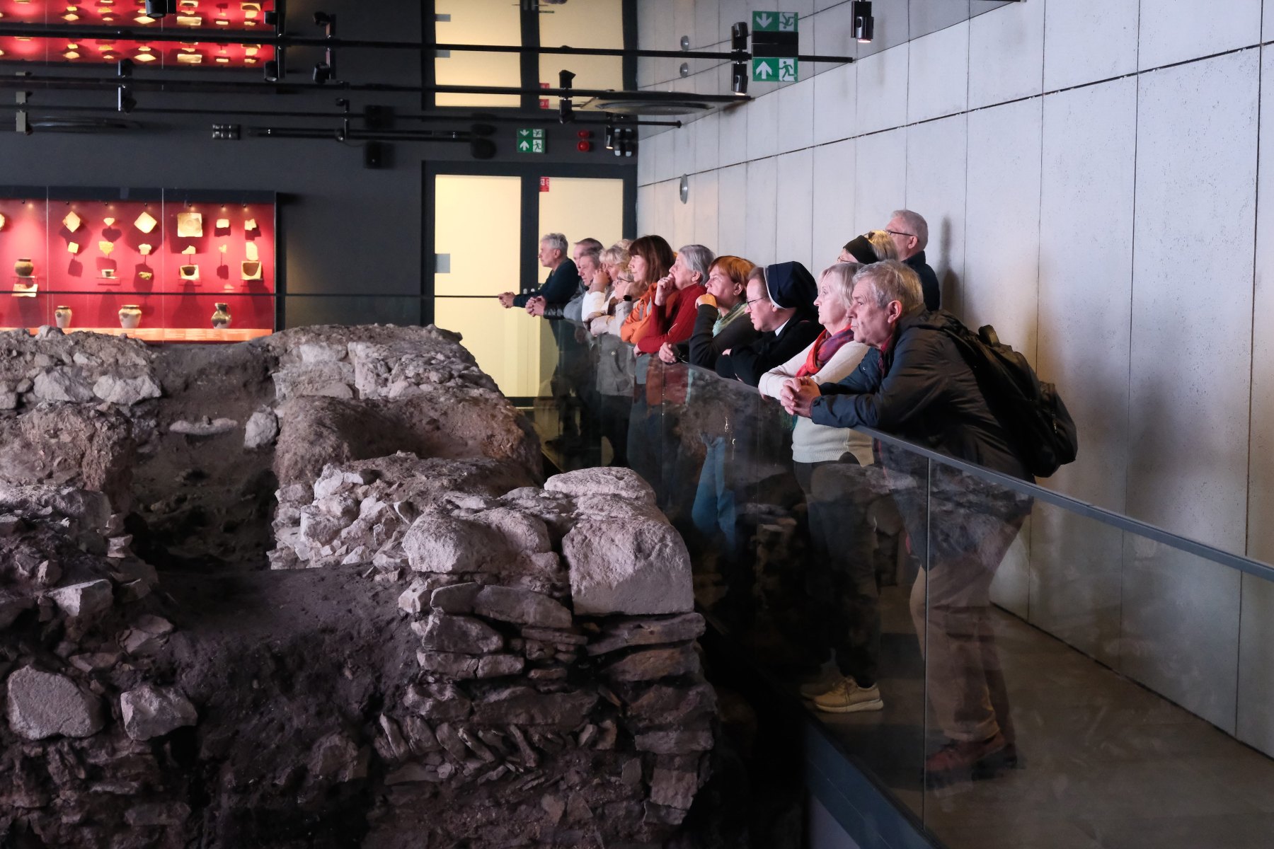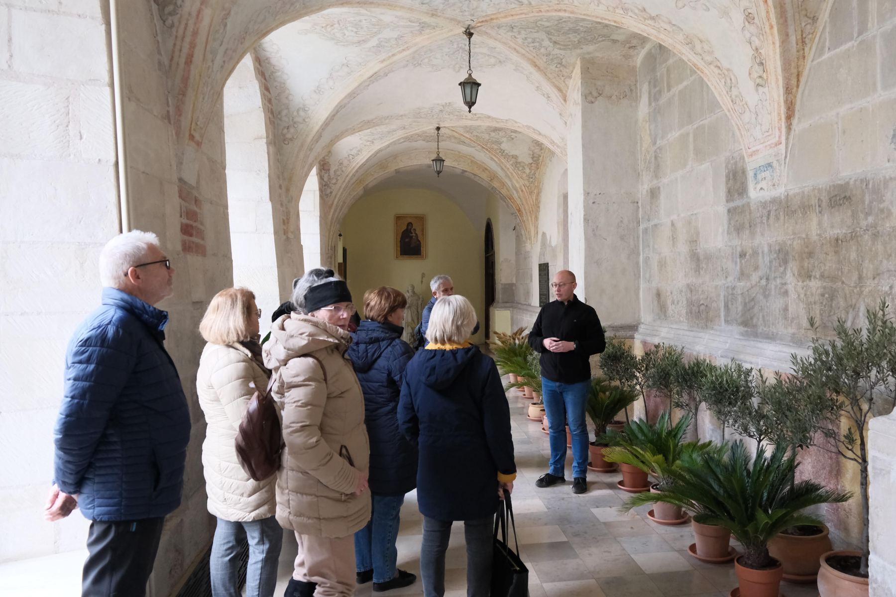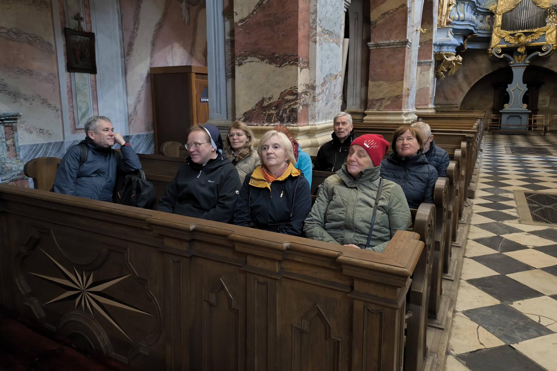 W sobotni poranek 18 października 2025 roku wyruszyliśmy sprzed kościoła św. Szczepana w Krakowie na naszą kolejną Pielgrzymkę. Tym razem wybraliśmy Jędrzejów i Wiślicę. W Jędrzejowie zwiedziliśmy Opactwo Cystersów. Jest to najstarsze opactwo w Polsce założone w 1140 roku przez cystersów przybyłych z Burgundii na zaproszenie Janika Jaksy, późniejszego arcybiskupa gnieźnieńskiego. Po świątyni oprowadzał nas postulant Piotr. Ciekawie przedstawił nam historię kościoła i zasady życia zakonnego. Ważnym miejscem w kościele jest kaplica poświęcona Wincentemu Kadłubkowi, który ostatnie pięć lat swojego życia spędził w klasztorze, gdzie zmarł i został pochowany. Zwiedziliśmy też podziemia kościoła. Są tam zgromadzone przedmioty codziennego użytku, zarówno samych zakonników jak i okolicznych mieszkańców. Znajdują się też bardzo dobrze zachowane mury wcześniejszego romańskiego kościoła pw. św. Wojciecha.