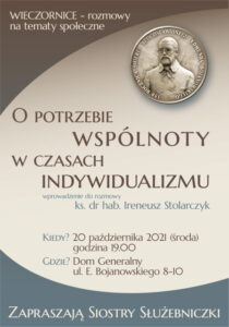 Podczas spotkania wybrzmiało wołanie o potrzebę wspólnotowości w naszych rodzinach, środowiskach mieszkalnych i miejscach pracy, co też będzie tematem następnej Wieczornicy, na którą zapraszamy 20 października br. o godz. 19.00 w Domu Generalnym, przy ulicy Bojanowskiego 10.
