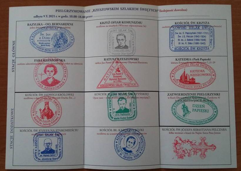 Na szlaku pielgrzymowania znalazły się: Bazylika OO. Bernardynów, Fara Rzeszowska, Ratusz Rzeszowski, Krzyż – Pomnik „Ofiarom Komunizmu”, kościół św. Krzyża oraz Katedra Rzeszowska i Park Papieski oraz dodatkowe stacje, tj.: kościół św. Józefa na Staromieściu, kościół św. Jadwigi, kościół bł. Karoliny Kózki, kościół św. J.S. Pelczara oraz kościół Matki Bożej Saletyńskiej.