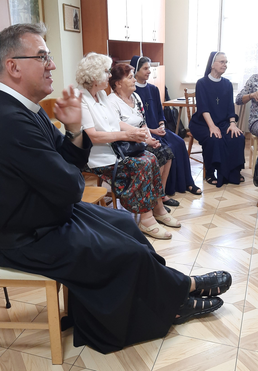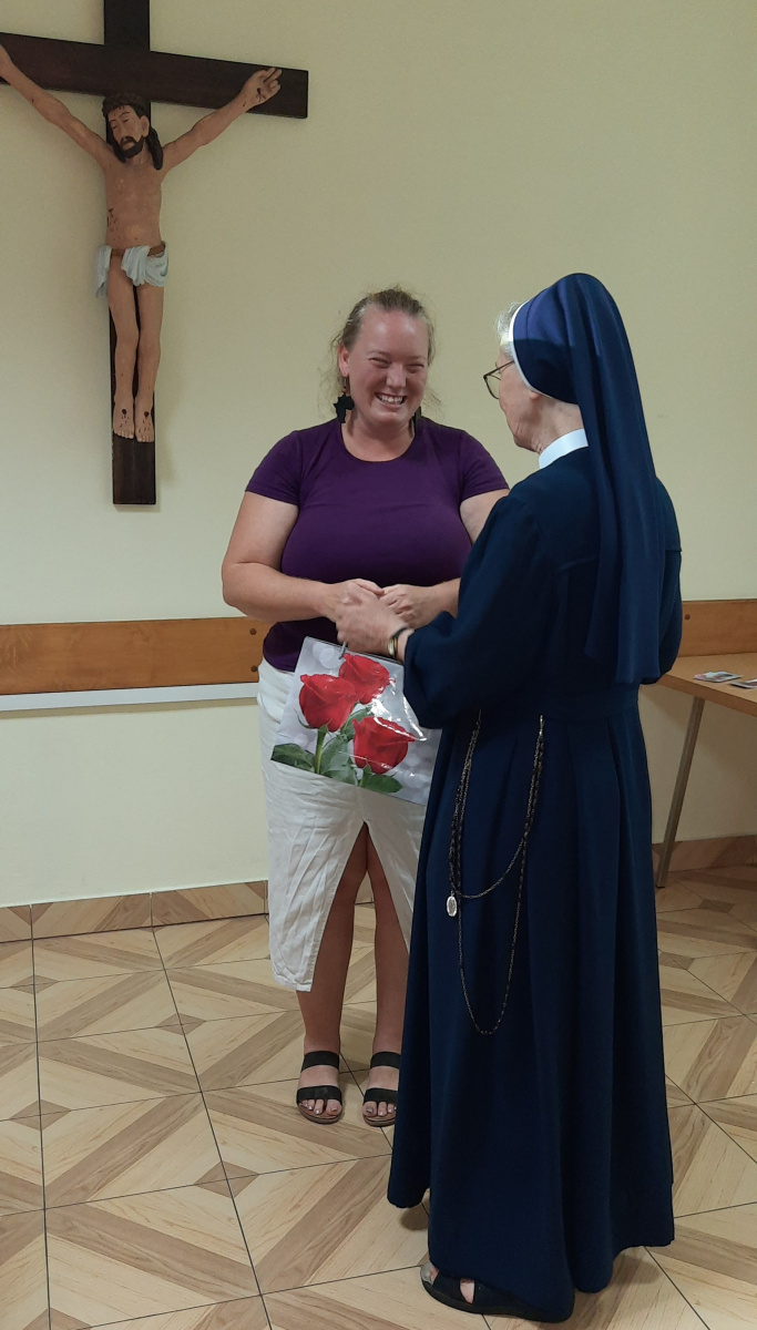 Na zakończenie nadszedł czas na podziękowania. Panie z Lublina ułożyły piosenkę o Ojcu Sylwestrze – o jego mądrości, uśmiechu, ojcowskiej dobroci. Członkowie Rodziny podziękowali s. M. Elizie Sułkowskiej za wspaniałe przygotowanie i poprowadzenie rekolekcji, za jej troskę i matczyne serce. Na ręce Siostry Przełożonej Mieczysławy Pyśkiewicz wyrazili wdzięczność wszystkim siostrom i zaproponowali, by przedłużyć ten czas rekolekcji o jeszcze kilka dni więcej.