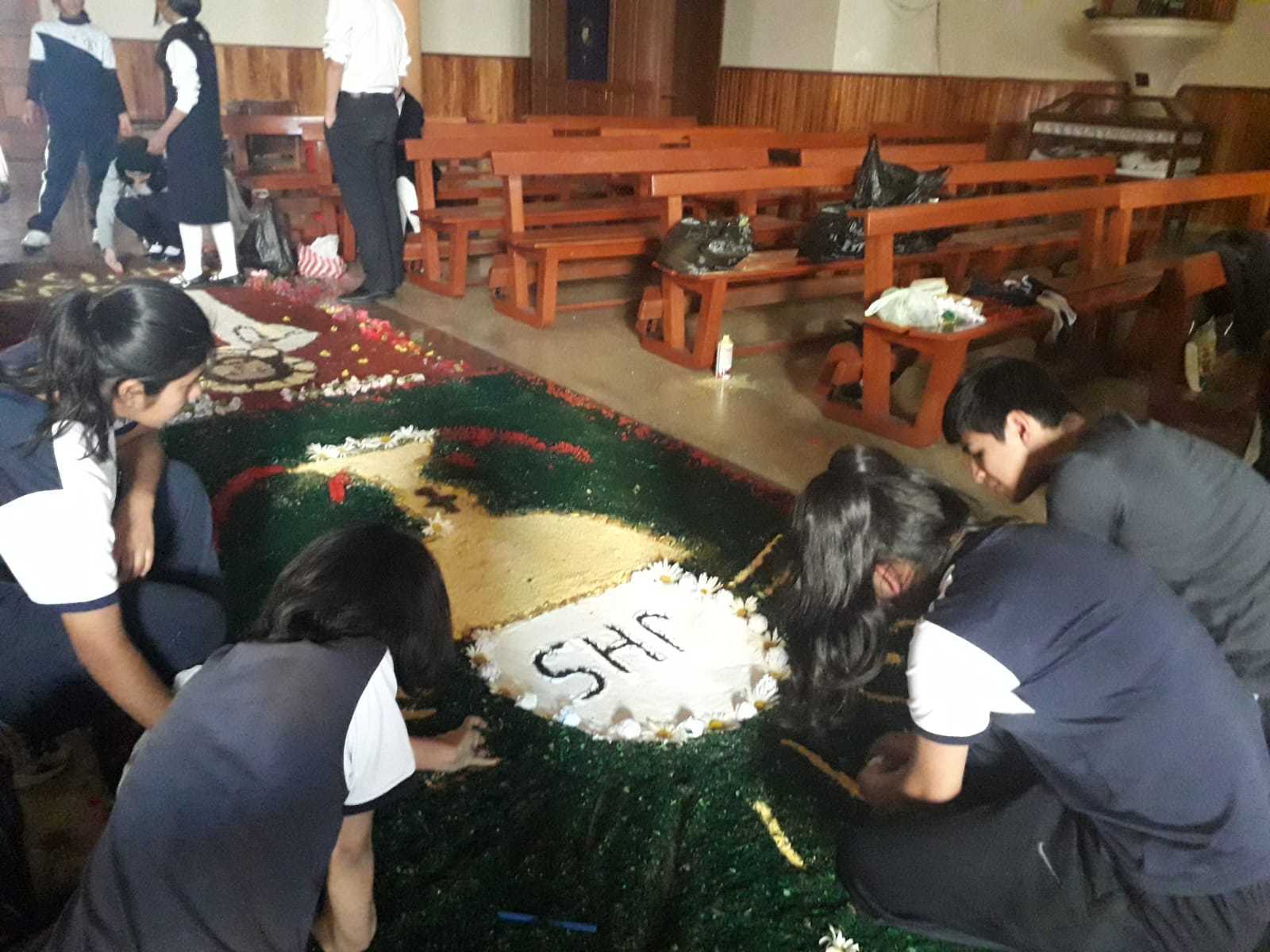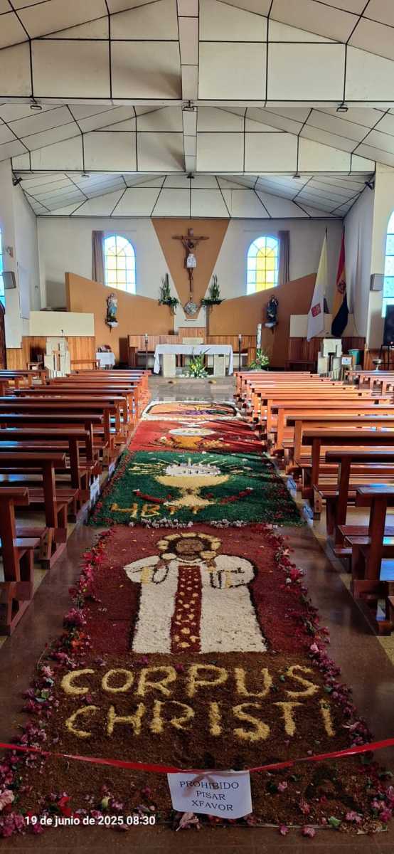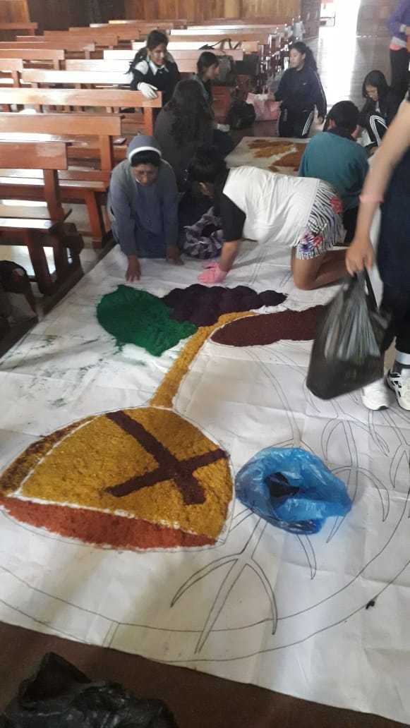 Szkoły przygotowywały dywany lub mozaiki na ulicach wokół katedry w Cochabamba, z której po sprawowanej Eucharystii i adoracji wyruszyła procesja z Najświętszym Sakramentu, w której wzięli udział studenci z naszej szkoły.Uczniowie porannej i popołudniowej zmiany, pod kierunkiem s. Marii Eleny Ferrufino i s. Carolaín Tapia, pomagali w parafii Matki Bożej Łaskawej i bł. Edmunda Bojanowskiego w tworzeniu dywanów w kościele i w późniejszej procesji eucharystycznej.