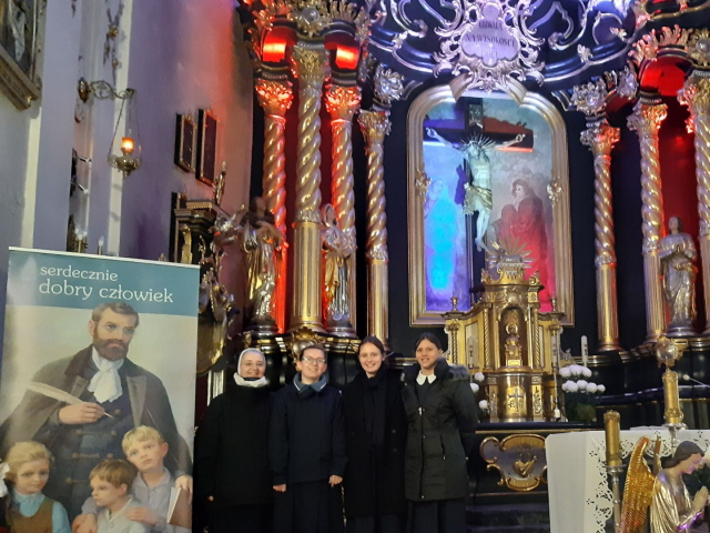 Jednak sednem Urodzin bł. Edmunda nie był wymiar materialny, lecz przede wszystkim duchowy. Toteż przez całą niedzielę, podczas każdej Mszy Świętej, siostry naszej wspólnoty oraz postulantki modliły się wraz z parafianami, dziękując Dobremu Bogu za dar naszego Ojca Edmunda, a s. Katarzyna Szulc przybliżała wiernym Jego postać oraz posługę naszych sióstr w Skoczowie. Także i tutaj osoby świeckie nie zawiodły, ale chętnie zaangażowały się w oprawę liturgii poszczególnych Mszy Świętych: o godz. 7.30 i 9.00 – członkowie Rodziny bł. Edmunda, zaś o 14.00 dziewczynki z DSM – u. Natomiast o godz.11.30 liturgię ubogaciły dzieci z naszej Ochronki wraz z rodzicami, naszymi siostrami i paniami pracującymi w przedszkolu. Przedszkolaki pięknie śpiewały pieśni o bł. Edmundzie, a dorośli czytali lekcje.