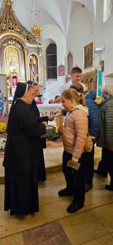 Po zakończonej Eucharystii s. Eliza w kilku słowach przybliżyła wiernym zgromadzonym na wspólnej modlitwie życie bł. Edmunda Bojanowskiego oraz zachęciła do naśladowania jego postaw w codzienności przez przyłączenie się do pięknie działającej już w tym środowisku grupy Rodzina bł. Edmunda Bojanowskiego. Potem była prezentacja multimedialna o Patronie i ucałowanie relikwii Błogosławionego, do którego osoby podchodziły z wielkim przeżyciem. Relikwie podawał ks. proboszcz, a siostry ofiarowały pamiątkowy obrazek z modlitwą za wstawiennictwem bł. Edmunda i słodką „gratkę” z myślą z pism Edmunda.