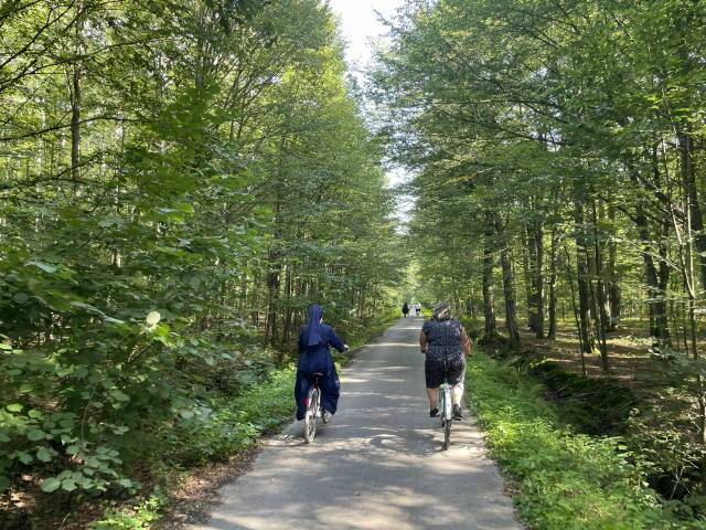 Bardzo cieszymy się z nowych osób i zapraszamy serdecznie, bo przecież w grupie jest siła i wierzę, że wspólnie uaktywnimy naszą grupę nowymi pomysłami, które dadzą obopólne zadowolenie i radość, a szczególnie będą wyrazem naszej służby Bogu tu na ziemi. W niedzielę 10 września, aby bardziej zintegrować naszą Rodzinę, po obejrzeniu uroczystości Beatyfikacji Rodziny Ulmów z Markowej, wybraliśmy się na pielgrzymkę rowerową w głąb rudnickich lasów, gdzie stoi kapliczka patrona myśliwych i leśników Św. Huberta. Taki przejazd leśnymi drogami to chwila refleksji nad pięknem, jakim nas Bóg obdarza. Przy kapliczce pomodliliśmy się Koronką do Bożego Miłosierdzia prosząc pokój i zgodę w parafii, naszych rodzinach, na świecie i w każdym ludzkim sercu. Było to też nasze uwielbienie Boga za Jego miłość i miłosierdzie. SZCZĘŚĆ BOŻE WSZYSTKIM…