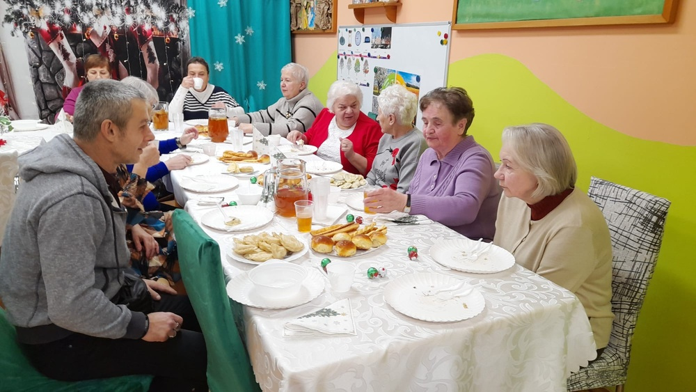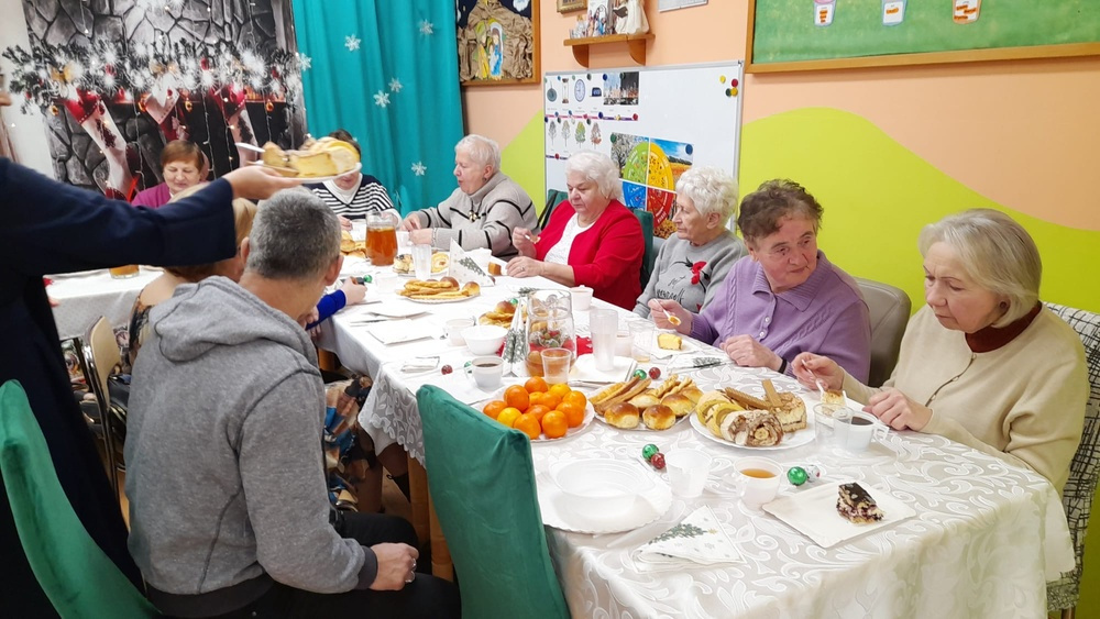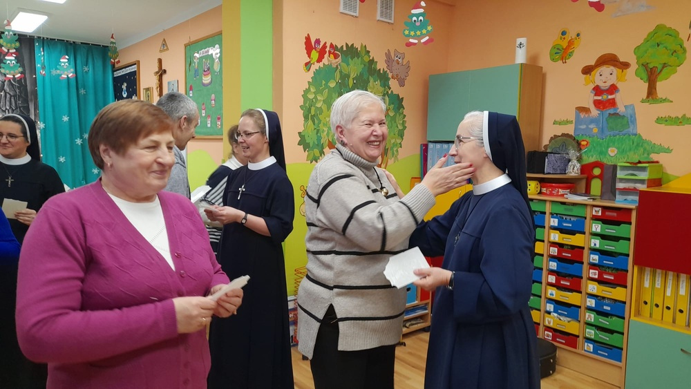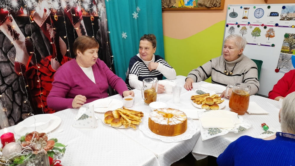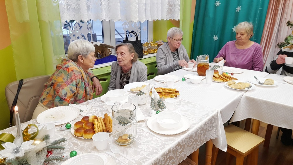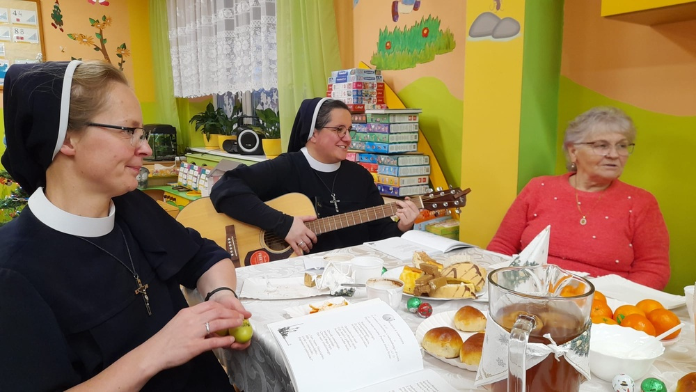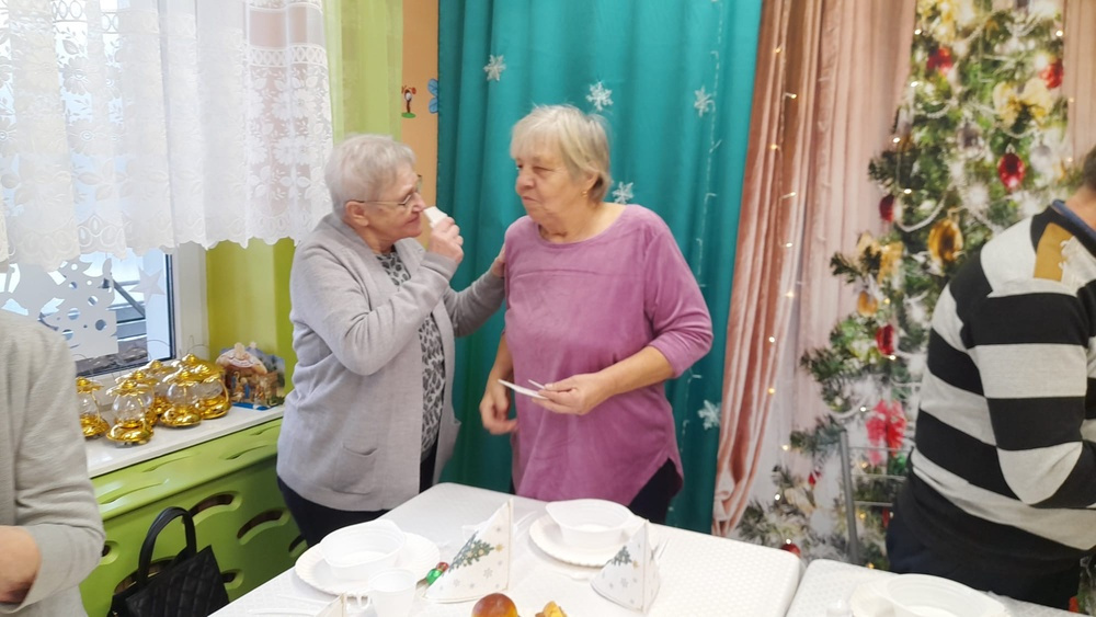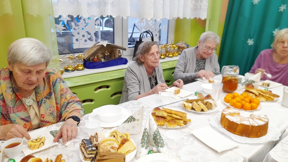 Po modlitwie udaliśmy się do świątecznie ustrojonej sali. Tu dzieliliśmy się opłatkiem, składając sobie noworoczne życzenia. Były wzruszenia z łezką w oku. Stoły były zastawione potrawami świątecznymi: barszcz z uszkami, pierogi, kapuśniaki i ciasta. To wszystko przynieśliśmy w darze od siebie. Wieczerza przerywana była kolędami, które na gitarze grała s. Justyna, co dodatkowo zachęcało wszystkich do śpiewu. Na koniec spotkania złożyliśmy też ofiarę pieniężną na Dom Dziecka w Boliwii i już czekamy na kolejne spotkanie, które odbędzie się 4 lutego.