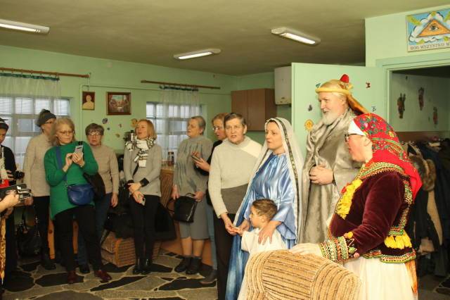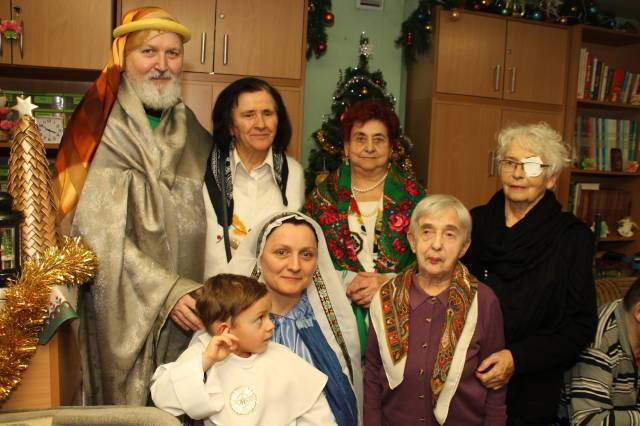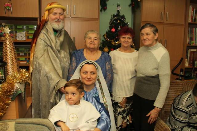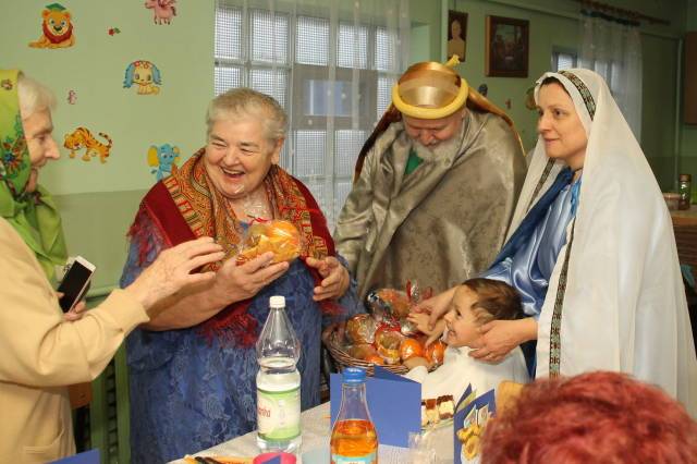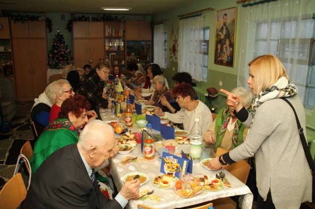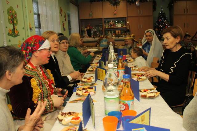 Naszemu kolędowaniu towarzyszyła s. M Katarzyna Dudko przygrywając na gitarze. Oczywiście tak serdeczne przyjęcie nam sie nawet nie śniło, a to dzięki s. M. Janie Wodzień i zespołowi charytatywnemu. Był przygotowany ciepły i smaczny posiłek, stoły zastawione ciastami. Seniorzy wykazali się dużą inicjatywą i talentem. Przedstawili scenkę z życia oraz zaśpiewali piosenkę, którą sami ułożyli. Wspólne kolędowanie i świętowanie Dnia Babci i Dziadka przebiegało w radosnej i miłej atmosferze. Na koniec jedna z seniorek przemówiła do nas, dziękując za wspólnie spędzony czas. My również dziękujemy wszystkim, którzy wzięli udział w tym pięknym spotkaniu, ze wzruszeniem opuszczaliśmy wspólnotę Seniorów w Nowej Hucie.