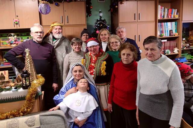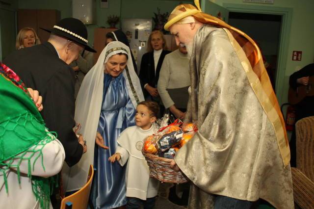 W sobotnie popołudnie 21.01.2023 roku nasza Rodzina bł. Edmunda Bojanowskiego wybrała się do Parafii Matki Bożej Królowej Polski w Nowej Hucie, by w gronie Seniorów świętować Dzień Babci i Dziadka, oraz wspólnie kolędować. Przewodnikiem dla nas była Święta Rodzina wraz z małym Jezusem, wprawdzie nasz szybko podrósł , bo miał już 3 i pół roku. Aby podkreślić ludowy charakter spotkania, wybrała sie z nami miejscowa Gospodyni z pobliskiej Mogiły w stroju regionalnym. Po odśpiewaniu wspólnie kolędy nasza mentorka złożyła życzenia babciom i dziadkom, po czym Jezus wręczał wszystkim seniorom drobne, witaminowe upominki. To dla małego Jezusa pierwsze publiczne wystąpienie, więc Maryja z Św. Józefem wiernie Go wspierali w tym ważnym zadaniu. Ponieważ Jezus przybył z daleka, więc chcieliśmy również Jemu złożyć dary. Otrzymał pełny kosz podarunków: a była tam, osełka masełka, najlepszy twarożek z Piątnicy, butelka soku malinowego na zdrowie, duża cytryna, troszkę słodkości, chałeczka, aby w drodze nie ustał.
