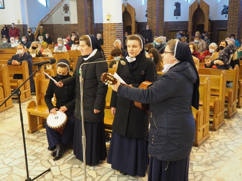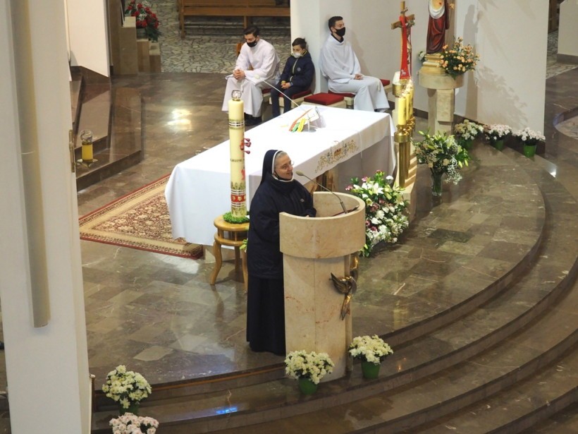 Niedzielę Dobrego Pasterza, tj. 25 kwietnia 2021 r. spędziłyśmy w parafii Miłosierdzia Bożego w Skawinie, gdzie dziękowałyśmy za dar powołań do Zgromadzenia Sióstr Służebniczek. Podczas Eucharystii włączyłyśmy się w oprawę liturgii oraz dzieliłyśmy się świadectwem powołania i charyzmatem Zgromadzenia. Czas spotkania z parafianami był też okazją, aby przedstawić sylwetką bł. Edmunda Bojanowskiego, jako społecznika, pedagoga, człowieka o wrażliwym spojrzeniu i miłośnika codzienności. Dzieląc się apostolskim zaangażowaniem i bardzo nowatorskim, jak na tamte czasy, oddziaływaniem bł. Edmund zakładał obiegowe biblioteki, szpitaliki, wydawał czasopisma, czy nawet gotował i rozdawał biednym zupę z przepisu Rumforda.